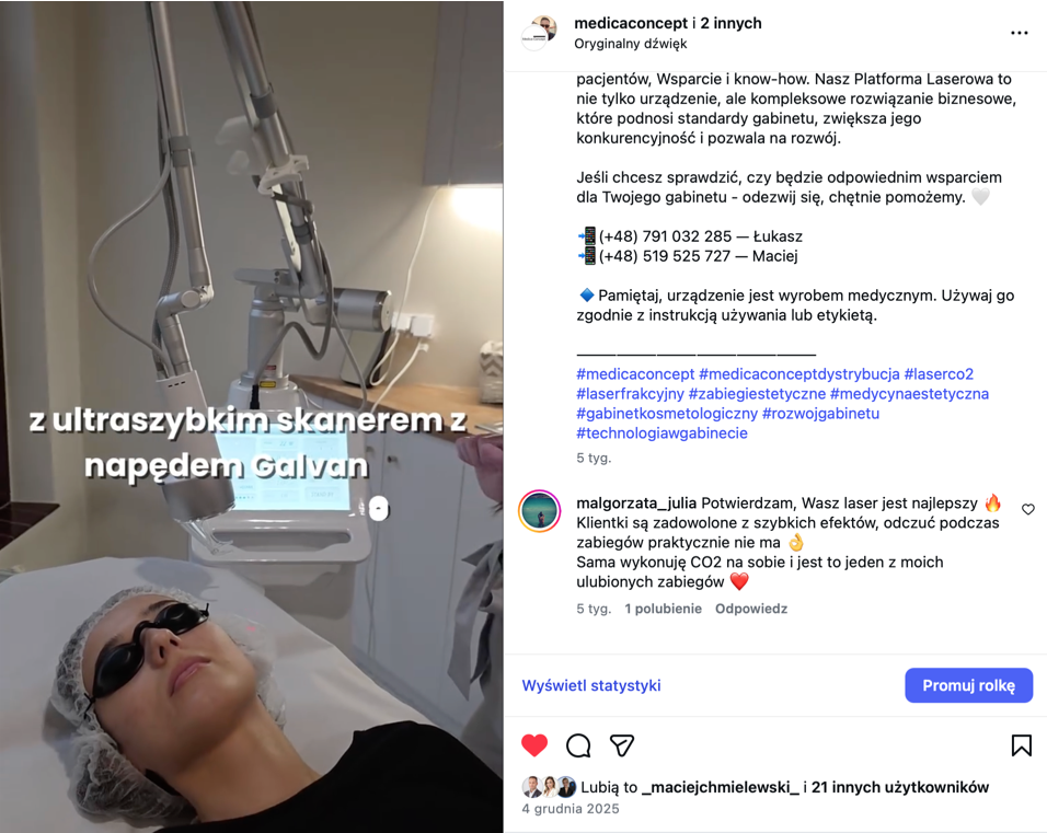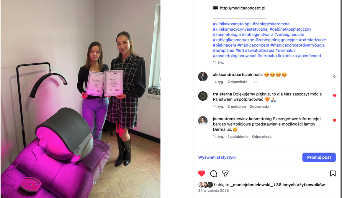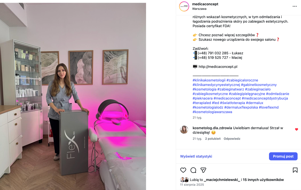 Śledź nas na Instagramie i zobacz, jak wybrane urządzenia sprawdzają się w codziennej pracy gabinetów. Inspiracje, realne efekty i zadowoleni klienci.
